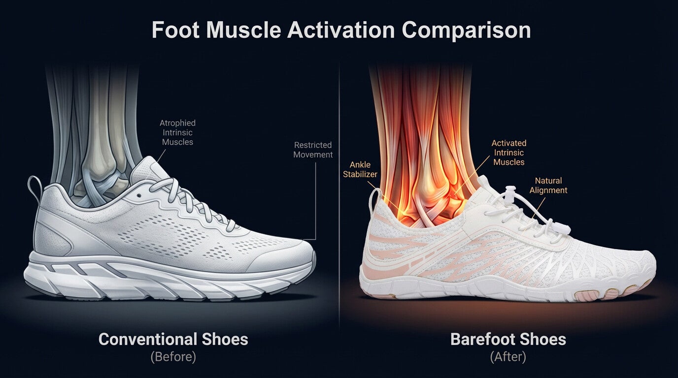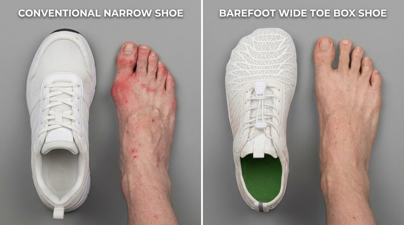 Foot pain isn't caused by age. It's caused by decades of wearing the wrong shoes. Narrow toe boxes that crushed your toes. Raised heels that threw off your alignment. Stiff soles that weakened the 29 muscles in each foot.